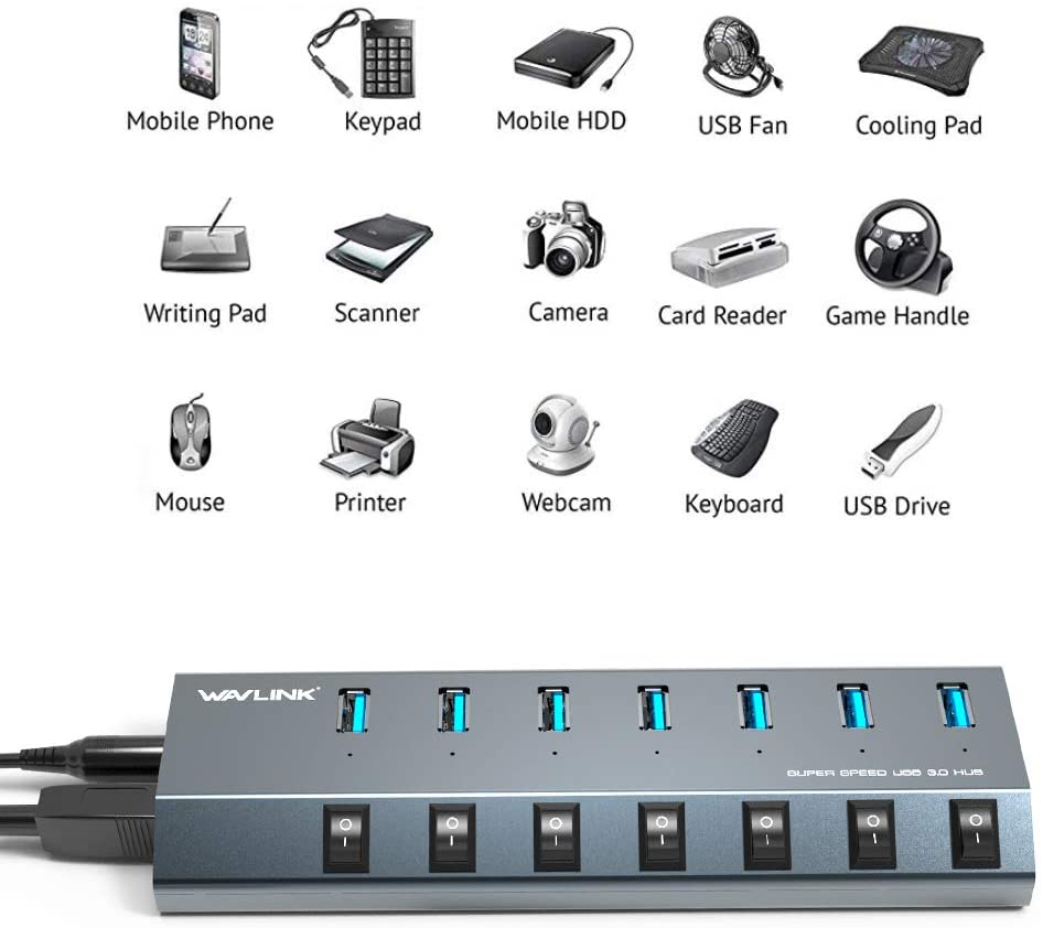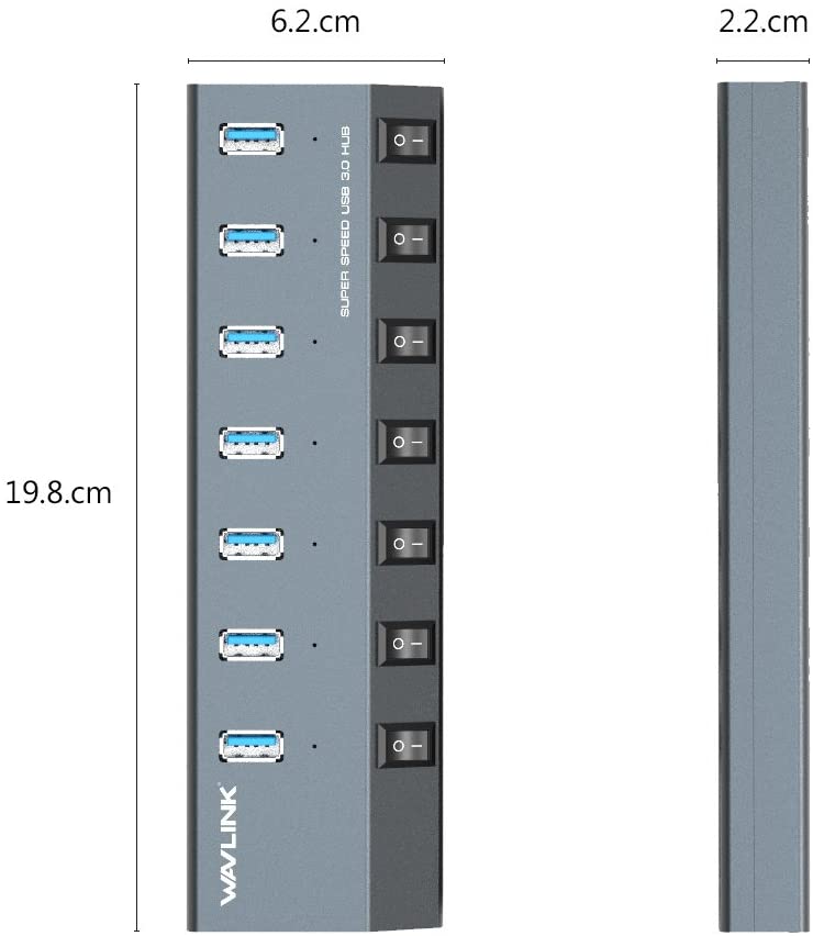 Brand WAVLINK Hardware Interface USB 3.0 Number of Ports 7 Item Dimensions LxWxH 7.48 x 6.38 x 2.56 inches Data Transfer Rate