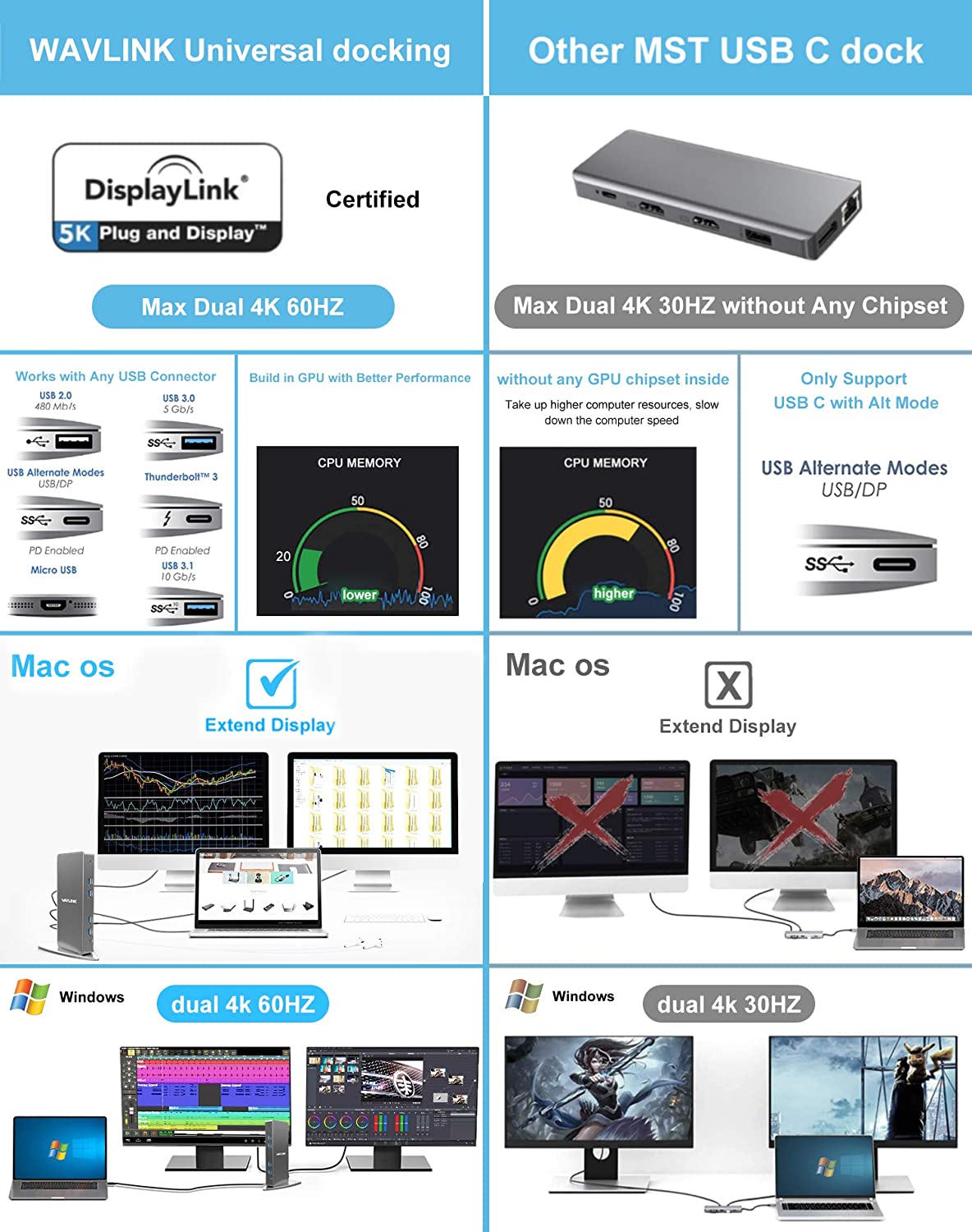 WAVLINK Dual 4K USB C Universal Laptop Docking Station