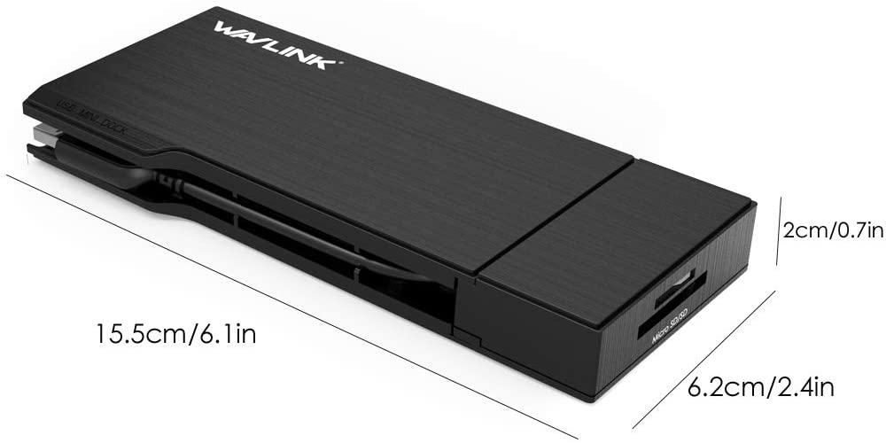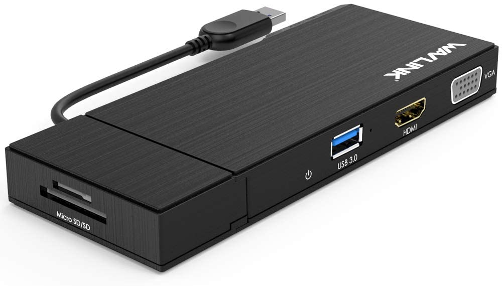 Brand WAVLINK Color USB 3.0 Dock Hardware Interface VGA, Ethernet, HDMI, USB 3.0, USB 2.0 Compatible Devices MacBook Air Total USB Ports 3 Item Dimensions LxWxH 4.72 x 2.17 x 0.79 inches Number of Ports 3 Item Weight 0.29 Kilograms Total HDMI Ports 1