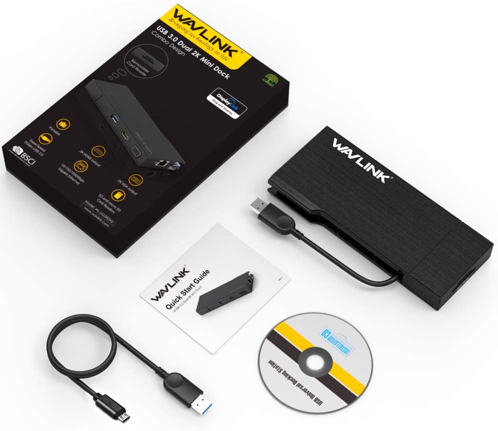 WAVLINK Universal Travel USB 3.0 Dock Dual Display HDMI & VGA with Gigabit Ethernet