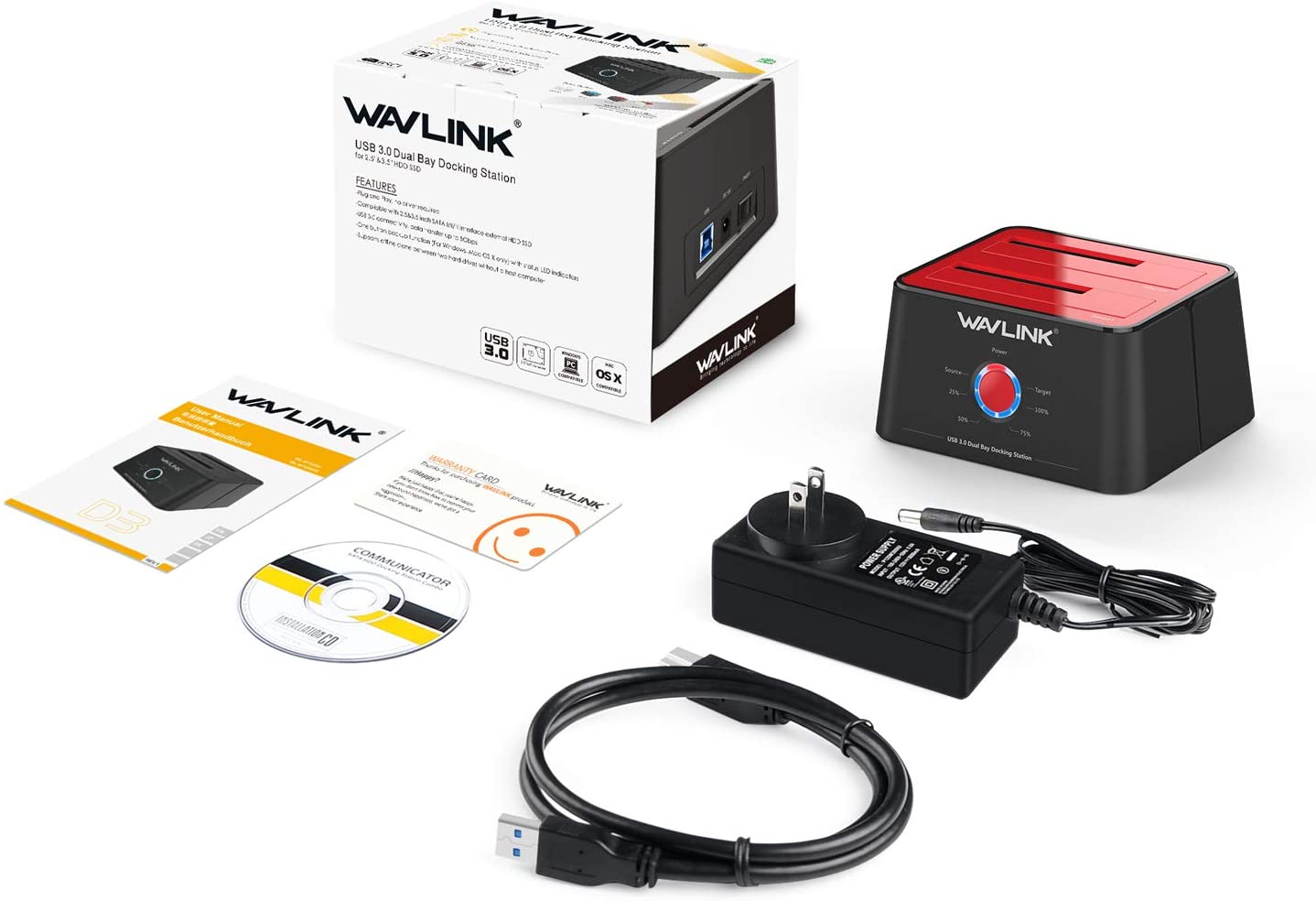 • Package Includes: 1x USB 3.0 HDD SATA Docking Station; 1x USB 3.0 Cable; 1x 12V/3A Power Adapter; 1x Manual