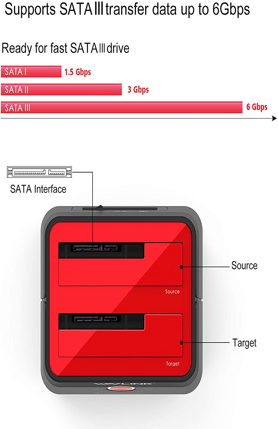 WAVLINK USB 3.0 to SATA I/II/III Dual-Bay External Hard Drive Docking Station for 2.5/3.5-inch HDD/SSD with UASP (6Gbps)